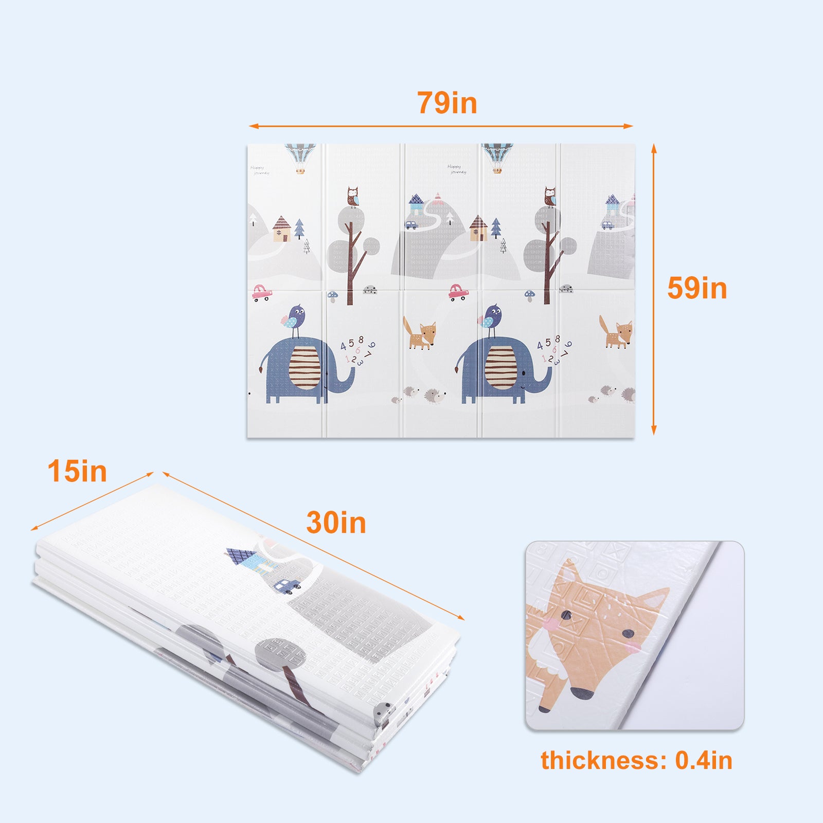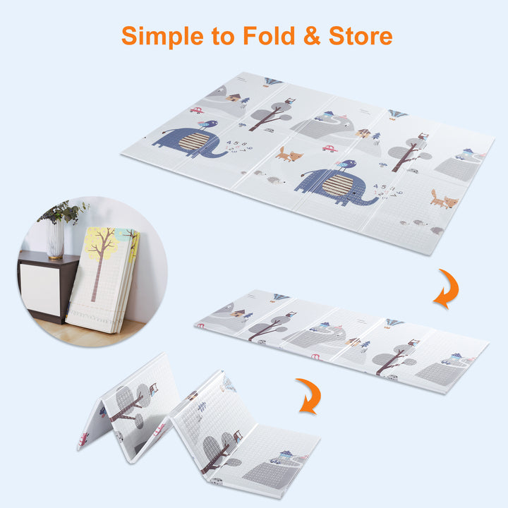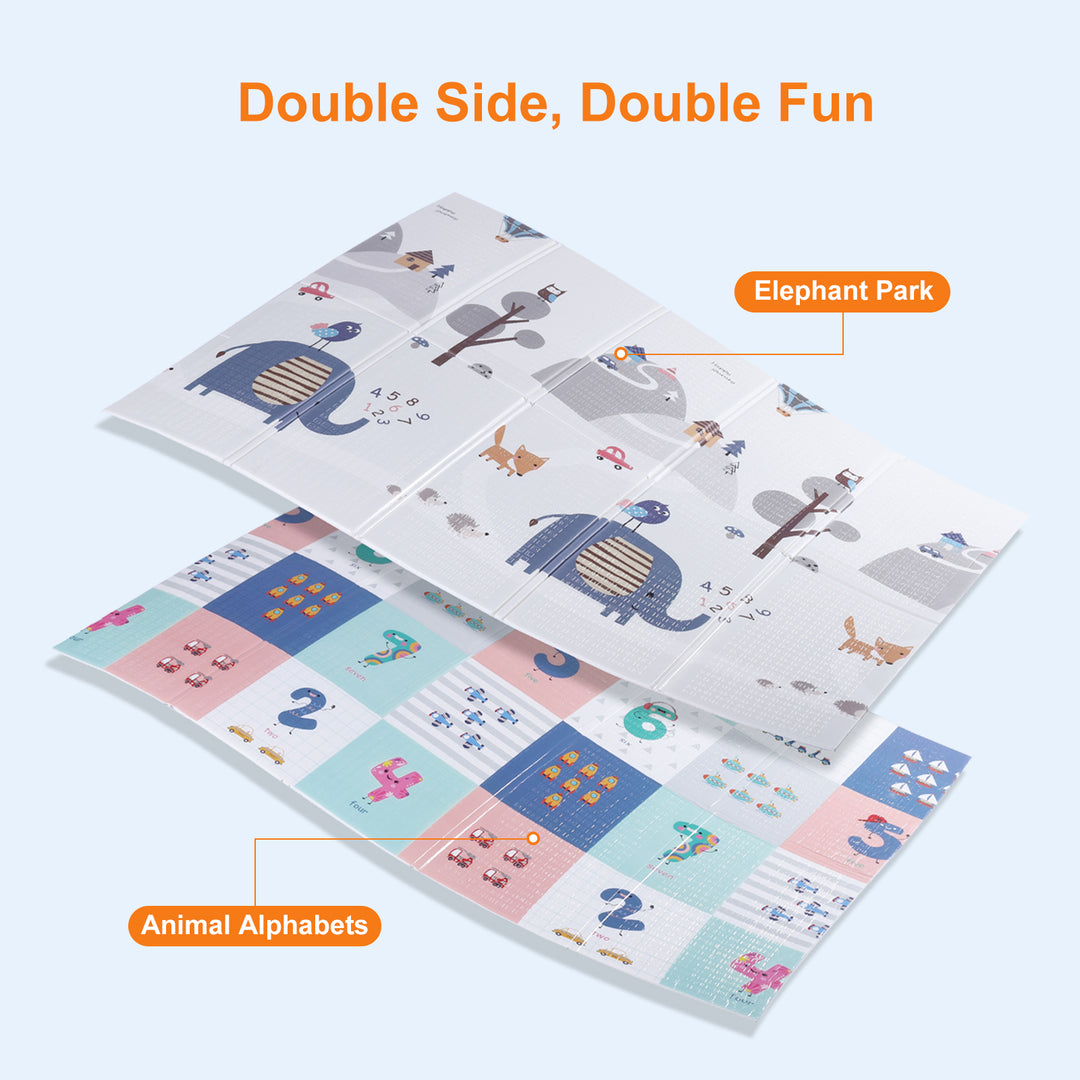 ❤️【Foldable & Reversible】The baby playmat is double-sided with two different patterns with lovely colors and cartoon animals. Unlike other playmats that can only be rolled up or several pieces assembled, Calody baby playmat is a single piece that is durable, foldable and light-weighted (2.3lb).