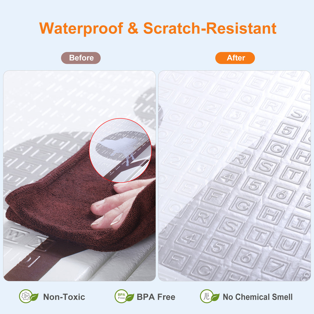 ❤️【Waterproof & Easy to Clean】XPE foam is water-resistent & sturdy to avoid water soak through the surface. You can easily wipe off baby's saliva and dirts with napkins or kitchen towels.