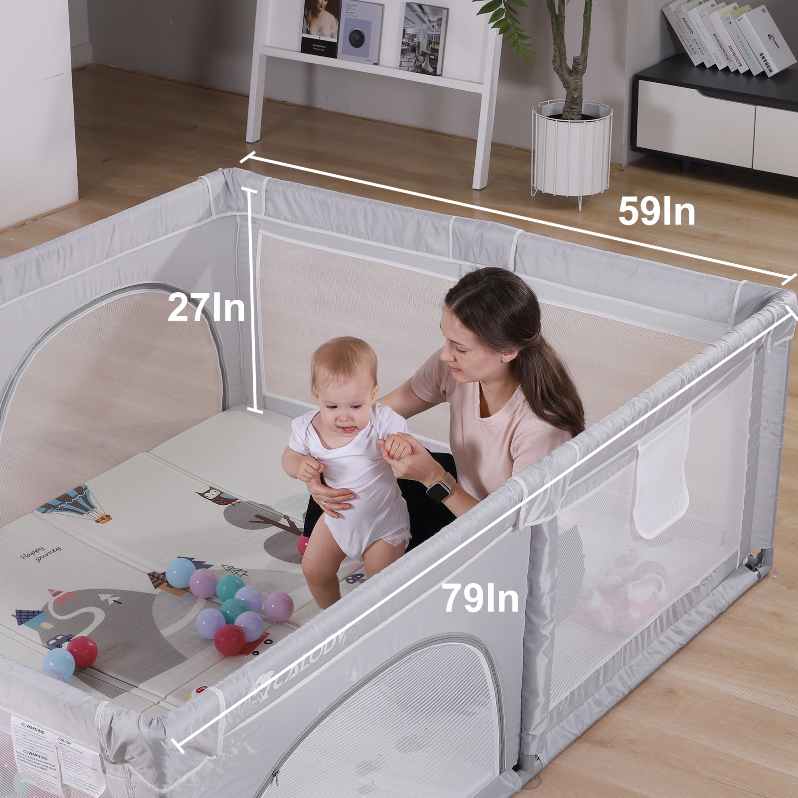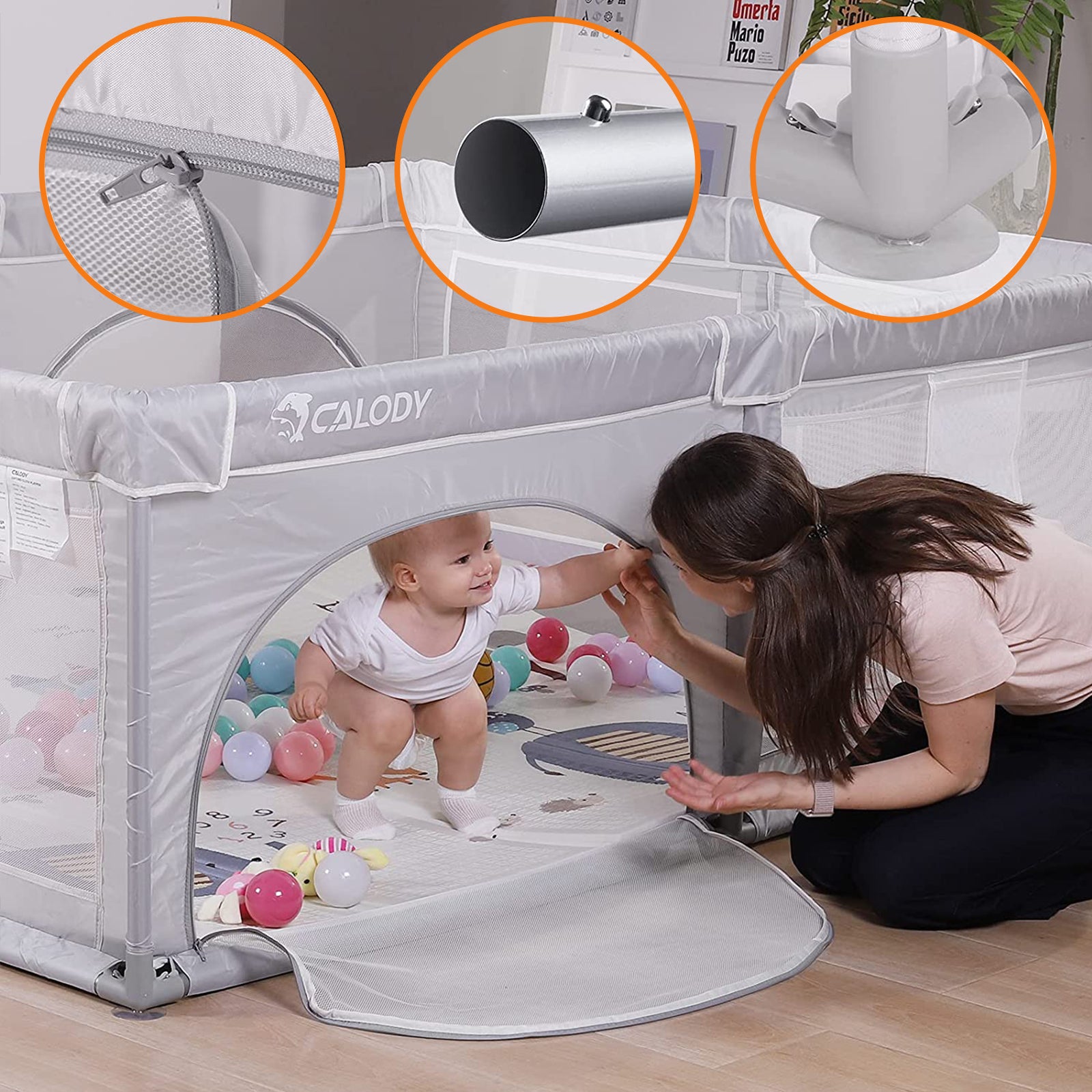 💕【Extra Large Baby Playing Area】Kellody Baby Playpen internal size is 79x59x27in/200x150x68cm. In such a lovely and ample space, your little one will love this playing area with toys, pets, friends and love from yours. The height of the playpen is quite enough for the baby to stand and walk while the playard area is plentiful for them to explore around.